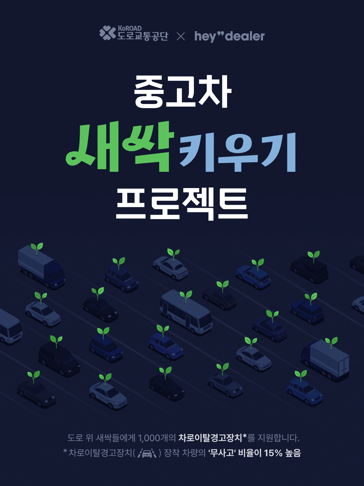 본 프로젝트는 차로이탈경고장치가 없는 차주 누구나 참여할 수 있다. 신청은 공단 SNS(인스타 @koroad_official)와 헤이딜러 홈페이지(www.heydealer.com)를 통해 11월 20일까지 가능하다.
